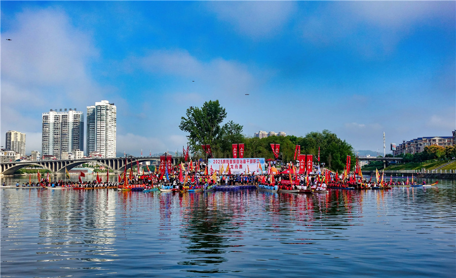 9月28日,2025年麻陽干部職工龍舟大賽在縣城錦江河段鳴鑼開賽,56支隊伍參與比賽,賽期3天。本次賽事項目為男女混合22人標準龍舟300米直道競速。(陳剛 攝)
